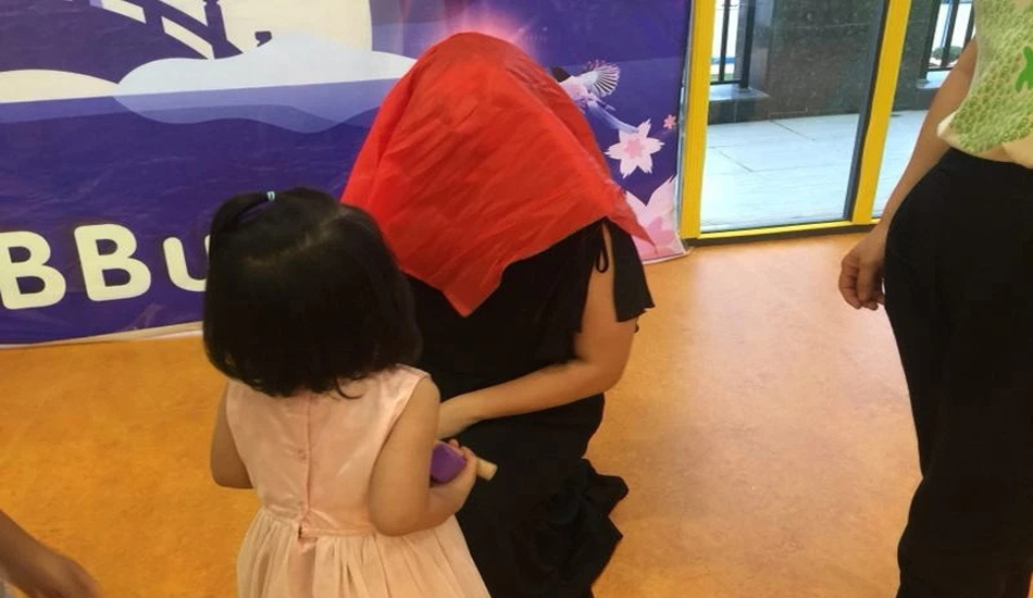 妈妈们盖着红盖头
